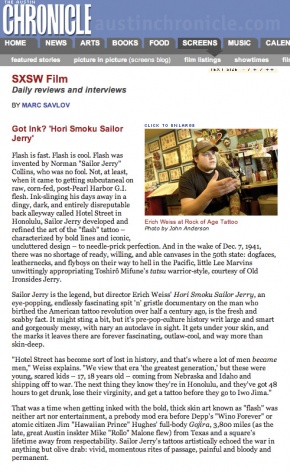 Last week, Hori Smoku Sailor Jerry was met with rave reviews at SXSW Film festival. Check out this review by the Austin Chronicle's Marc Savlov.